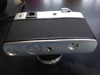 Tal y como veréis su estado es impecable, es más, tenía su carrete sin terminar en su interior, por desgracia alguien ya lo había velado, ya que me encontré la compuerta trasera semi abierta. Una cosa de las importantes es que dispone de una pila de botón de mercurio en su interior que ya es imposible de encontrar por que hace muchos años que dejó de fabricarse, bueno, pues esta cámara tiene su pila intacta y no me preguntéis como, pero aún funciona su visor telemétrico a la perfección.